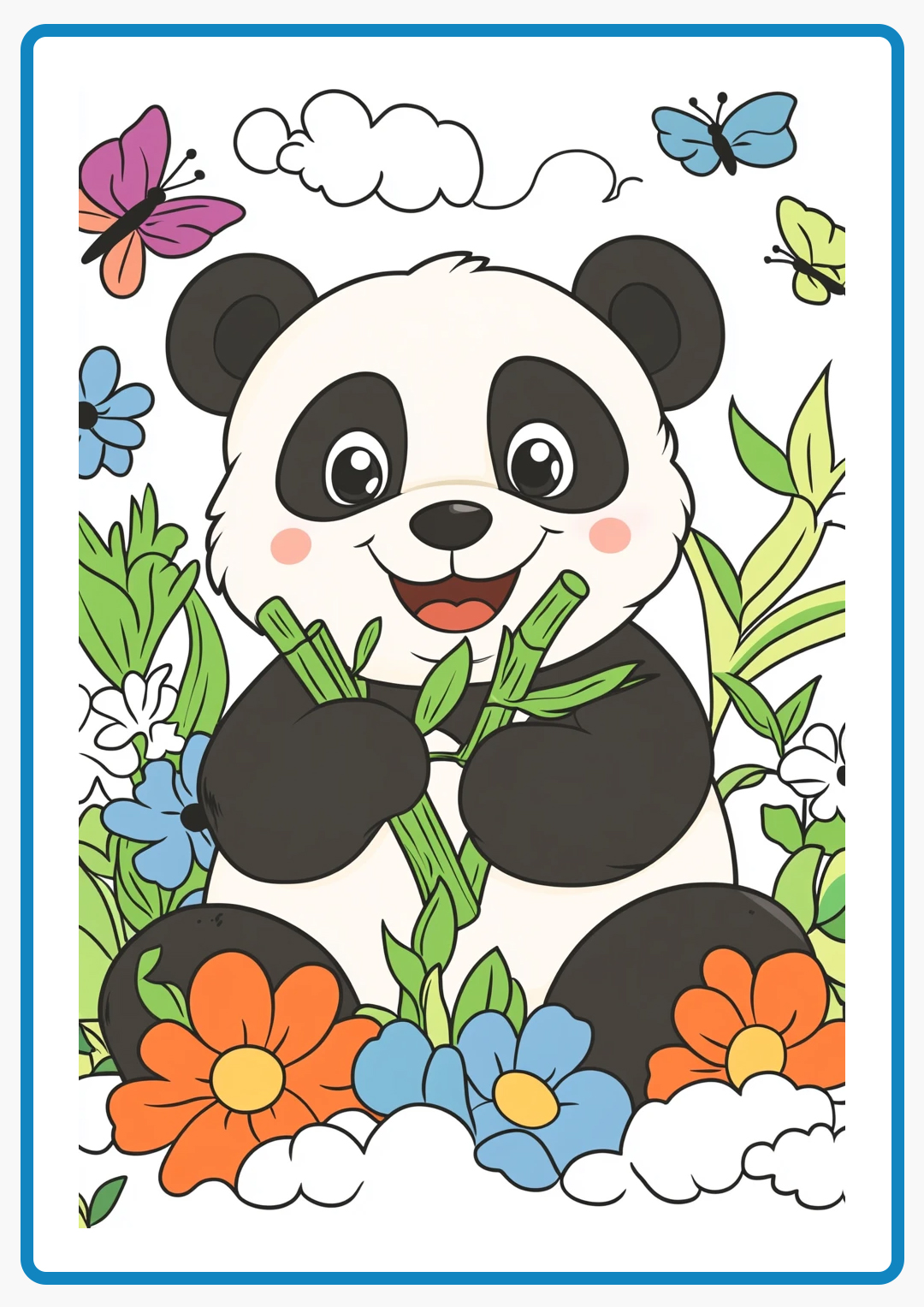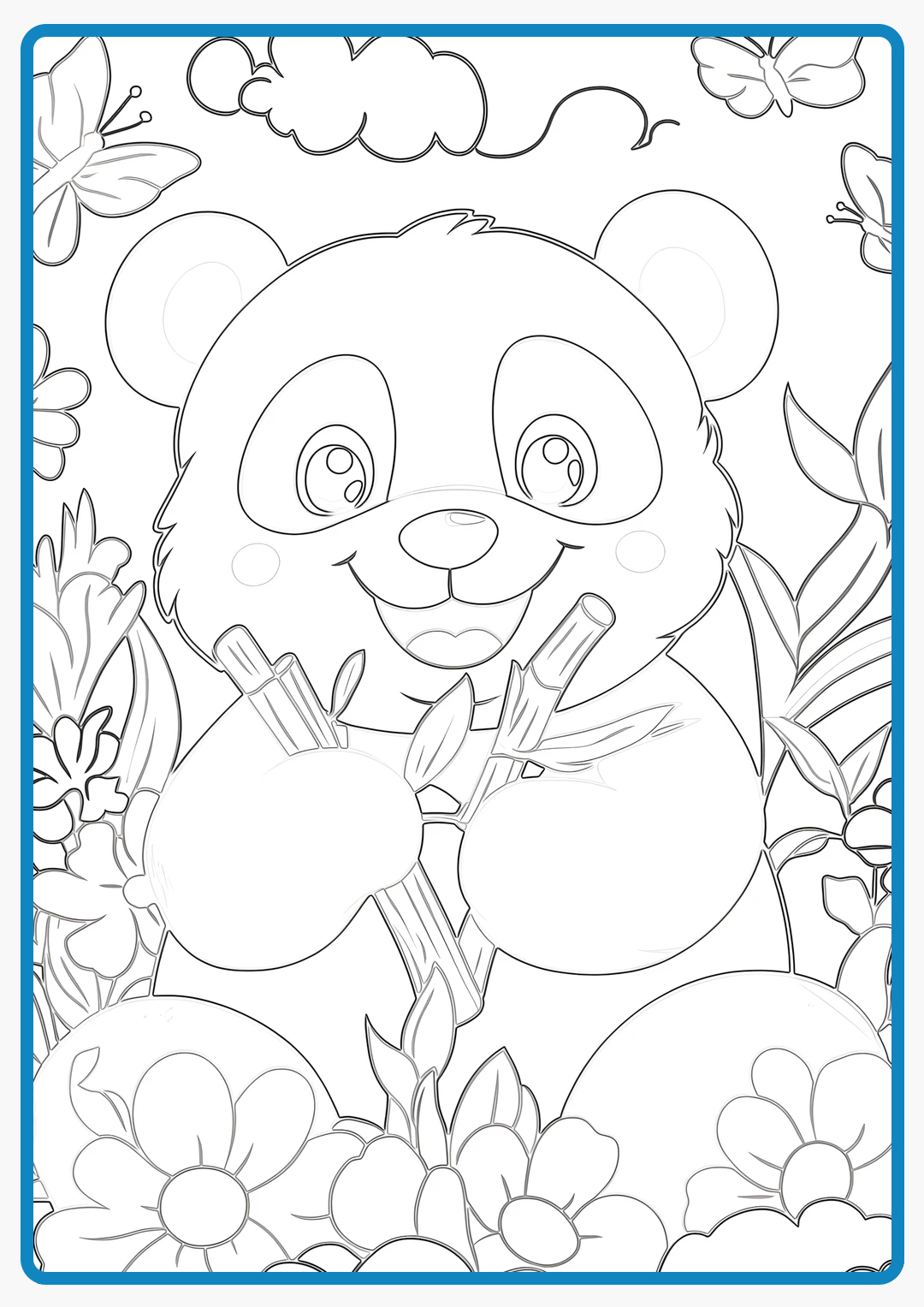 A cartoon parrot is standing on a tree trunk in the jungle coloring book
