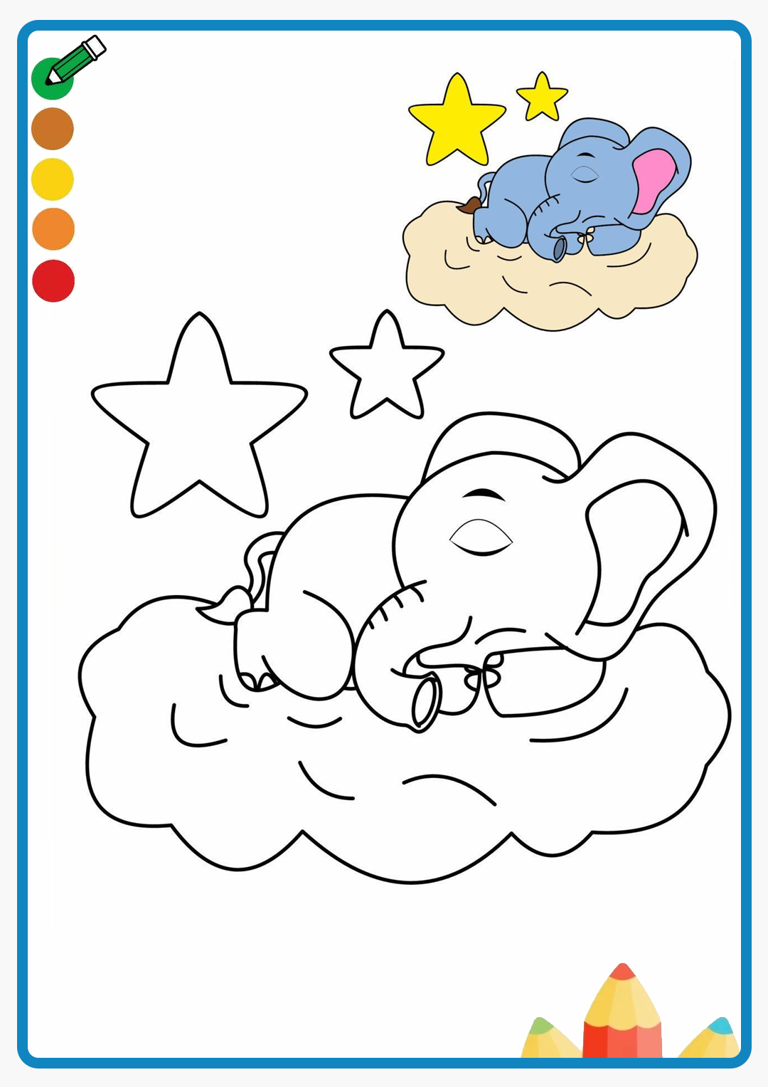 The elephant sleeping on the clouds coloring book
