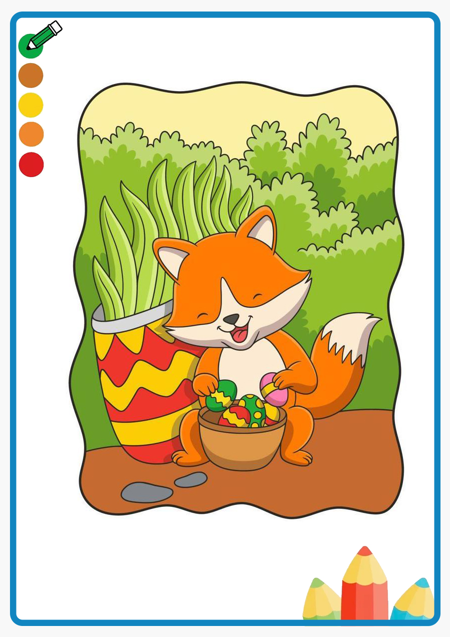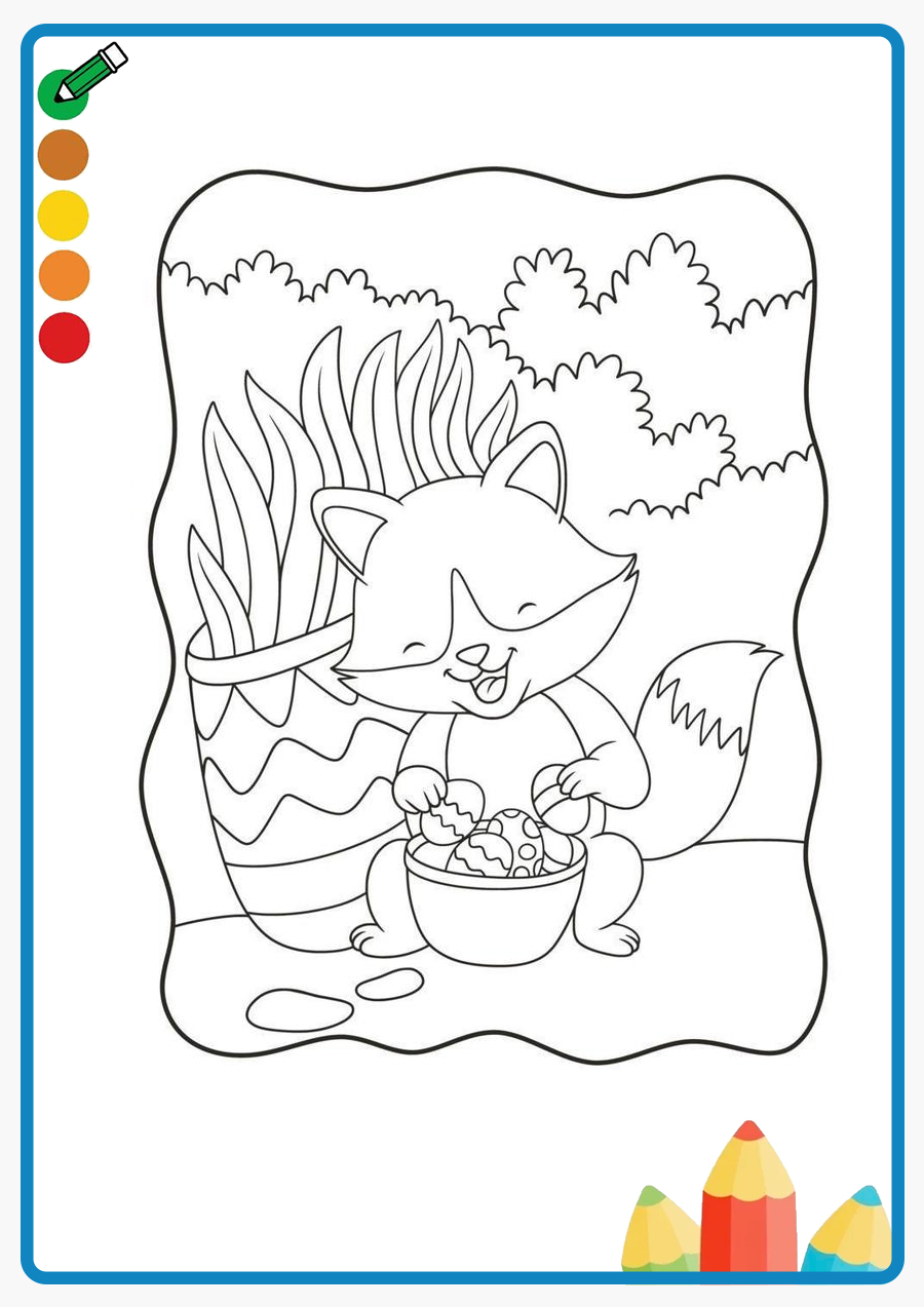 A cartoon parrot is standing on a tree trunk in the jungle coloring book